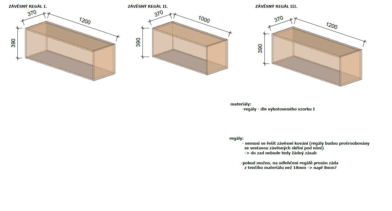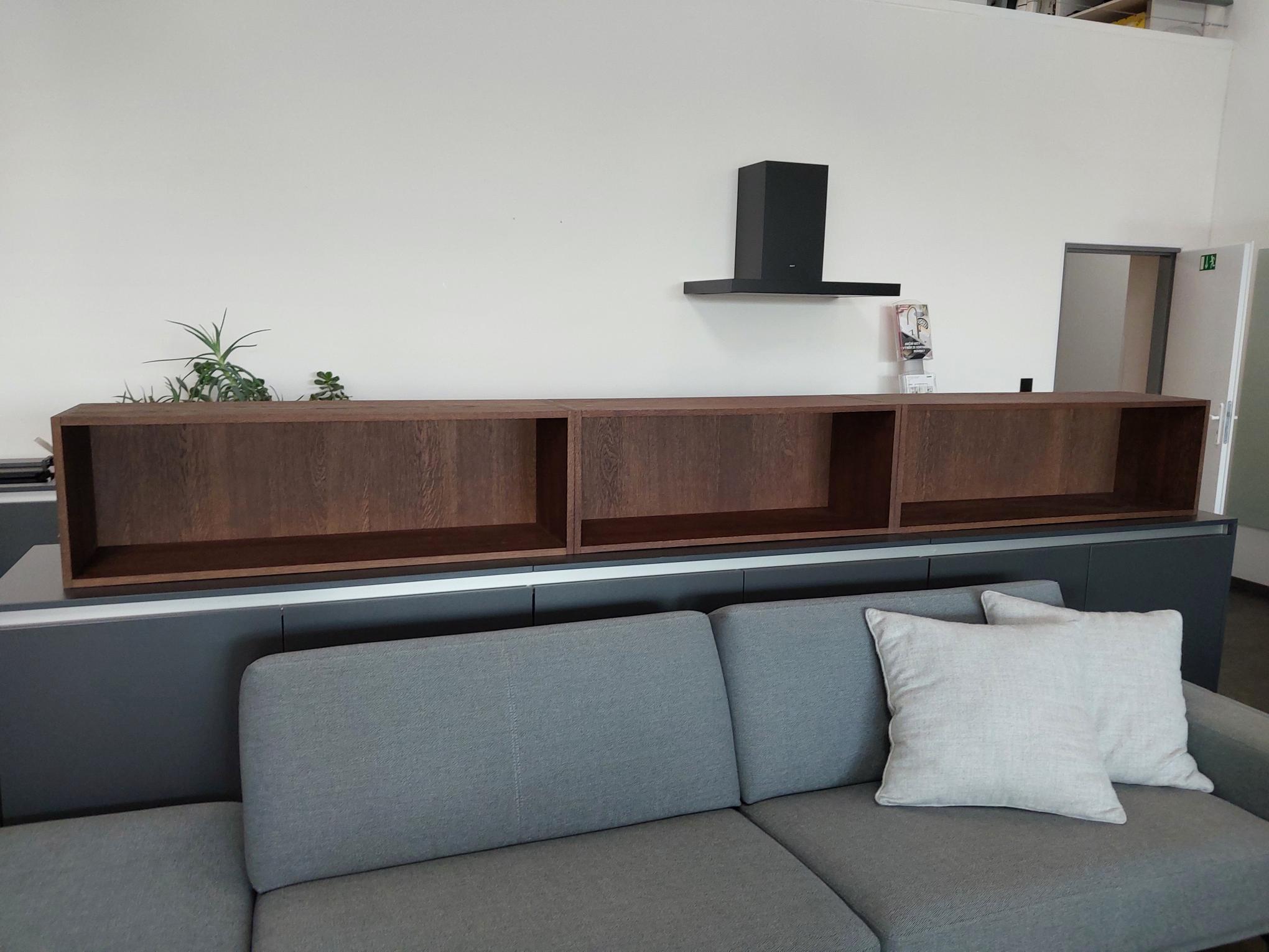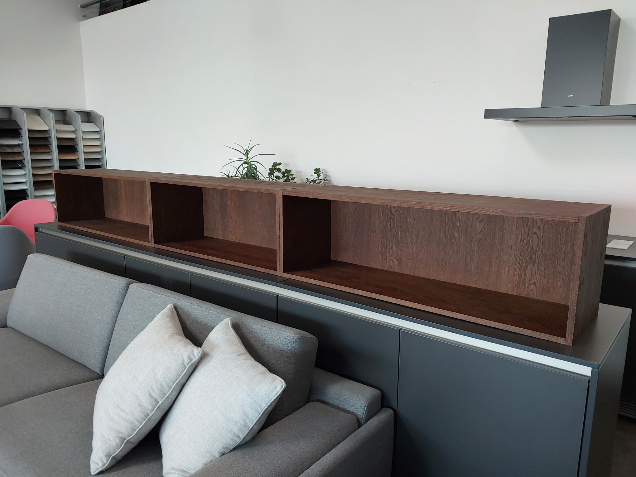 Atypický truhlářský nábytek – horní skříně s výklopy, dva samostatné korpusy každý se dvěma výklopy
