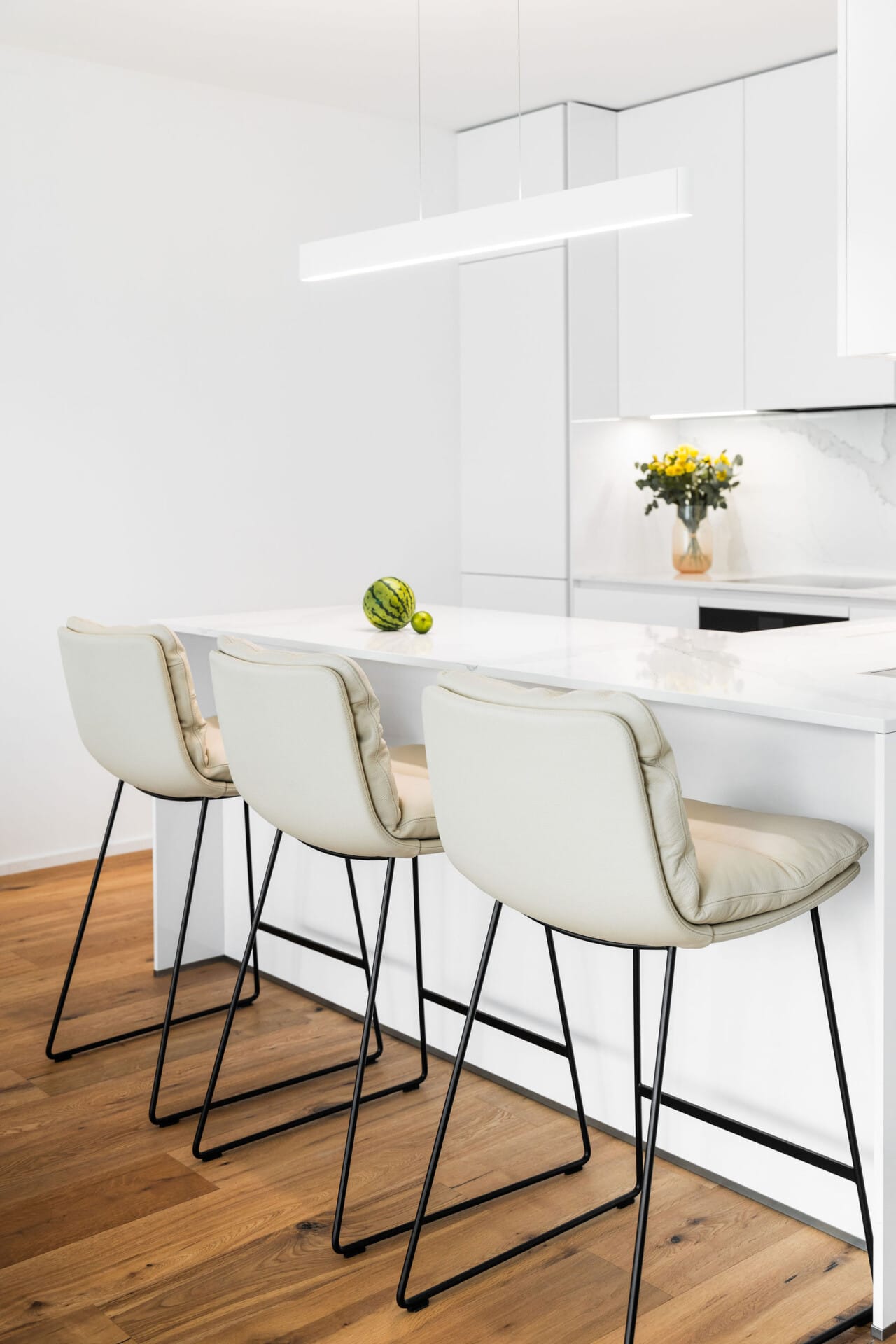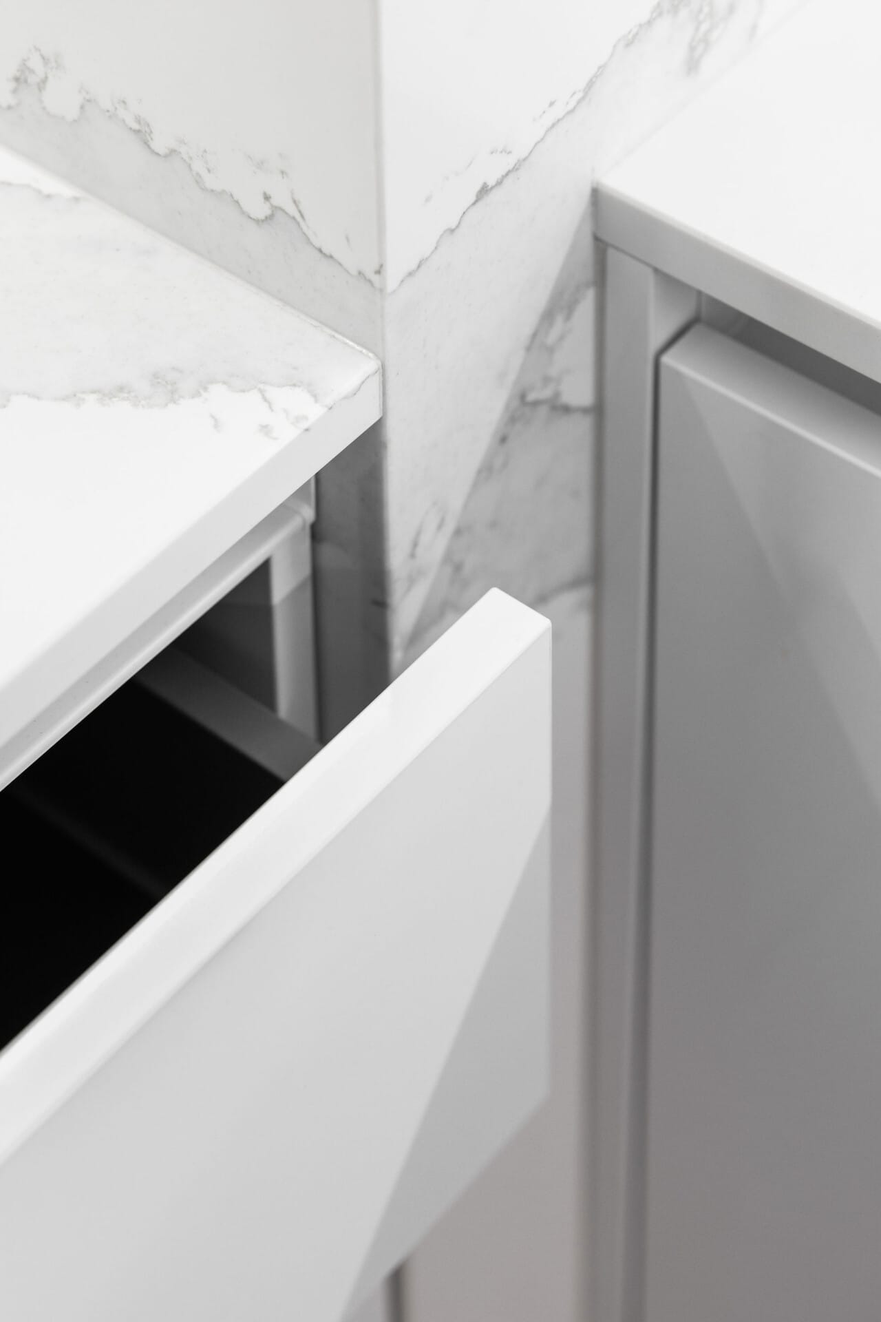 Kuchyňský nábytek Häcker Concept 130, provedení dvířek Perfect Brilliant (lak, vysoký lesk s rovnou lepenou hranou). Barva dvířek: Polární bílá.