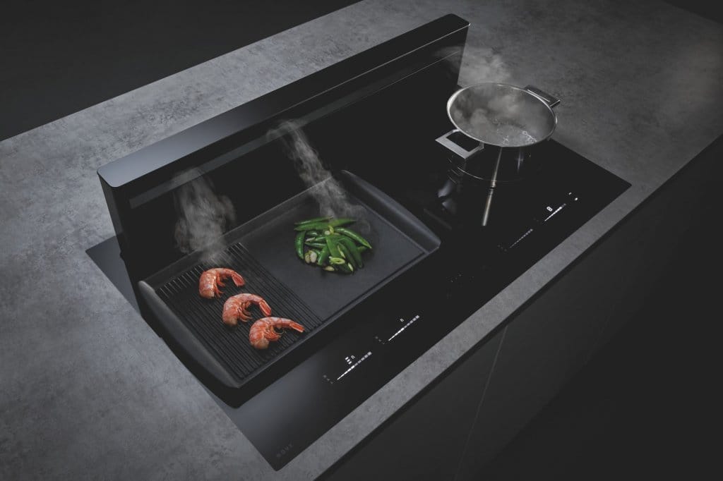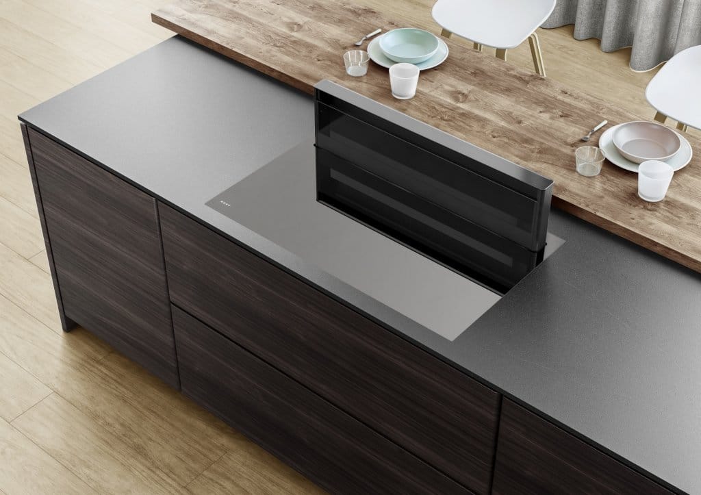 Unikátní kombinace indukční desky a integrovaného spodního odsavače vám nabízí naprostou svobodu při plánování, a tak si můžete plně vychutnat prostornou atmosféru vaší kuchyně. U Novy jsou štěrbinové odsavače viditelné pouze když vaříte a odsávají kuchyňské výpary přímo u zdroje.